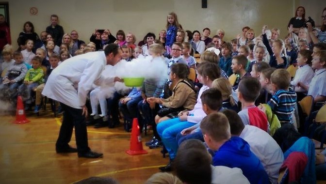 Następnie studenci wzięli udział w pierwszym wykładzie pt. „Od suchego lodu do ciekłego azotu – mrożące eksperymenty”, poświęconym chemicznym doświadczeniom z wykorzystaniem ciekłego azotu. Przygotowane dla dzieci pokazy wywarły na nich ogromne wrażenie i obudziły chęć do dalszej nauki.